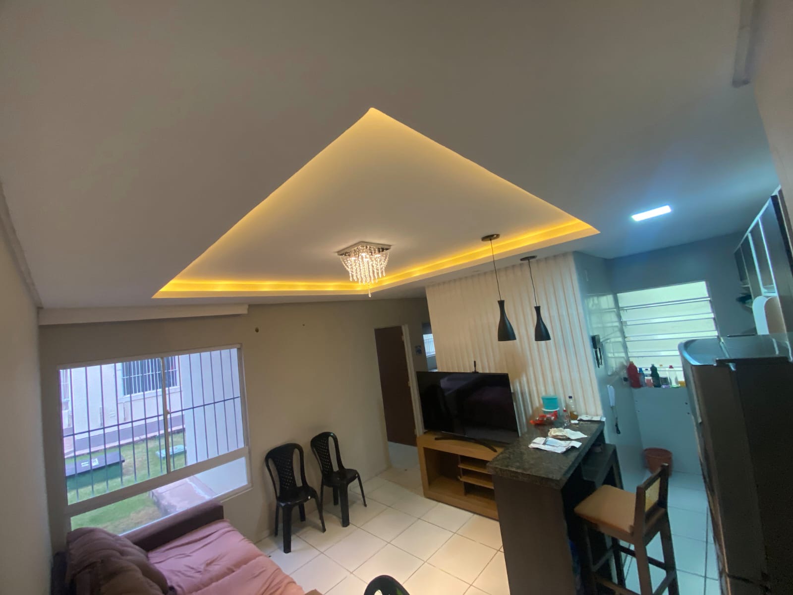 ✅ Sala ampla integrada à cozinha americana, proporcionando um ambiente moderno e funcional.
