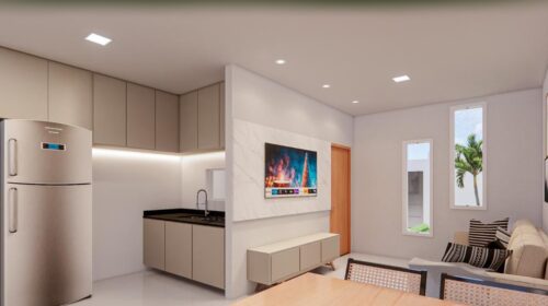 Cozinha, sala de estar, lavanderia